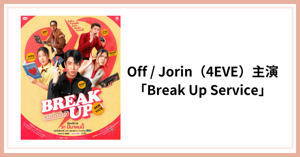 2025年3月31日(月)より放送が開始されたGMMTVのドラマ「Break Up Service」。 Offと4EVEのJorinが主演のラブコメドラマです。 そこで今回はタイドラマ「Break Up Service」のあらすじやキャスト、どこで観られる?といった配信情報などを紹介します。 -
