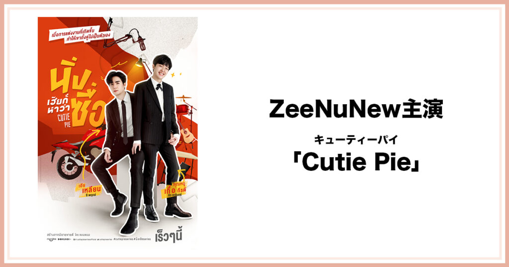 甘いフェイスのイケメンZeeと笑顔がとても可愛いNuNewが主演を務める「Cutie Pie(キューティーパイ)」。今回は「Cutie Pie」は何話?どこで観られる?といった情報から、あらすじやキャスト、予告映像、OSTをまとめました。記事を参考にドラマを楽しんでください。 -