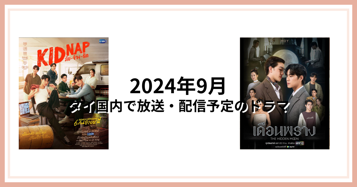 この記事では2024年9月に放送・配信が開始されるドラマを紹介します。2024年9月は、数は少ないですがGMMTVをはじめ、Channel 3やone31でドラマが放送されます。